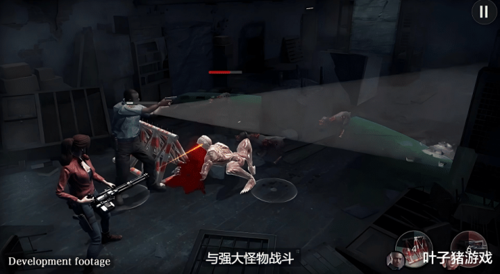 因此,主角可以招募里昂、克莱尔、吉尔等原作中的人气主角来帮助自己,自由组建策略小队去探索其他未知的区域。从演示动画来看,这些角色也有一定的协同羁绊与战术技能搭配,整体的战斗玩法更偏回合制一些。